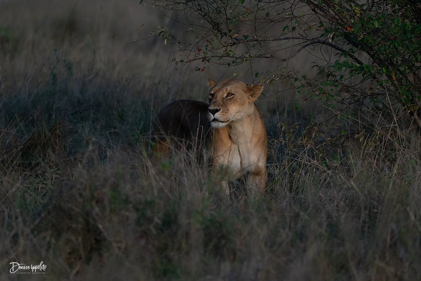 Our first afternoon in the Mara was good. We had two different sightings of a cheetah, and we saw several lions. We almost saw two separate hunting chases, but both fizzled out. Still the anticipation and build up was exciting. The evening ended with lightning and a heavy downpour. We photographed some Topis in the rain until we had our ISO’s at about 50,000!!