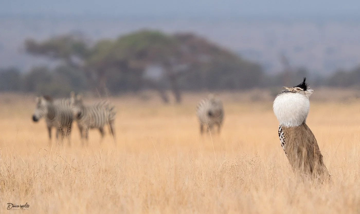 Our last morning in Amboseli before heading to the Mara was more of a potluck safari as we drove around just looking for whatever we rolled up on. In addition to the usual suspects, we did see a Kori Bustard displaying. His neck feathers were hugely fluffed, and he gave a knocking sound and lifted his tail feathers to his back.