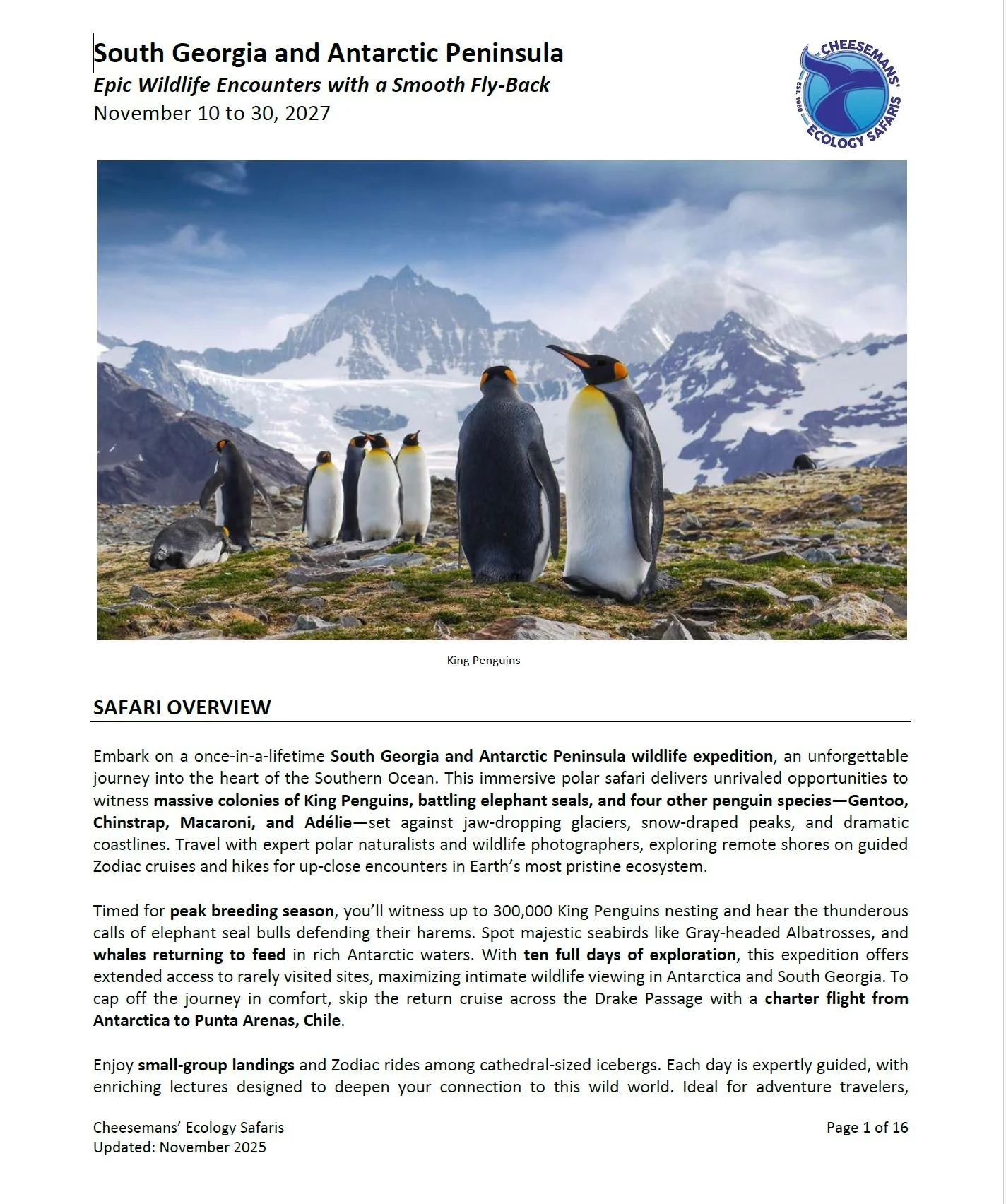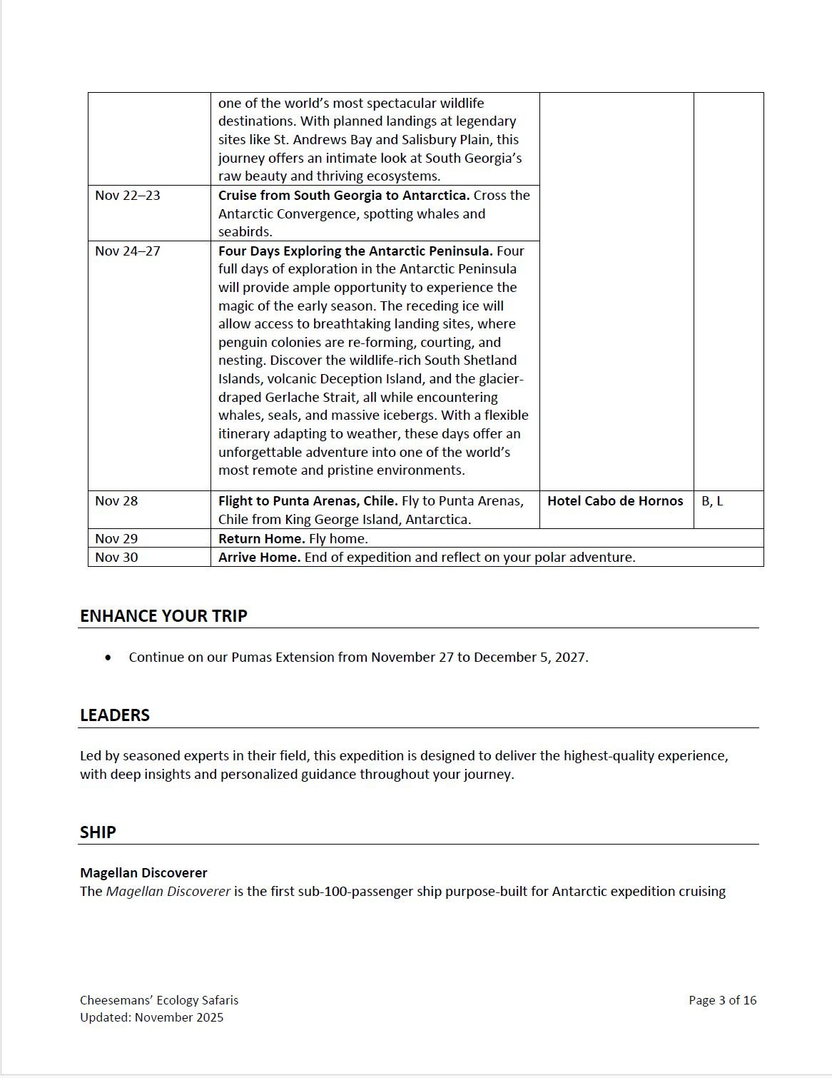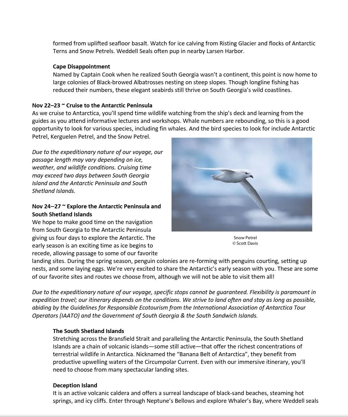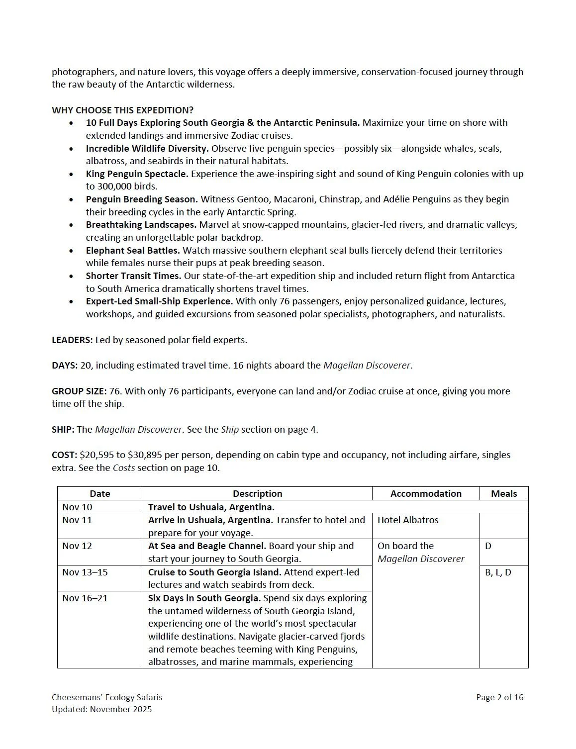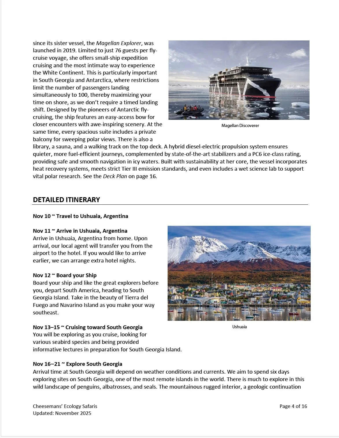 I am extremely happy to announce the photo tour that we have all been waiting for—South Georgia and Antarctica Peninsula -November 10-30, 2027, with CHEESEMANS’ TOURS onboard our beautiful, new ship—The Magellan Discoverer. The brand new Magellan Discoverer is a luxury expedition ship for Antarctic cruises. It has been designed for intimate, eco-friendly "fly/cruise" experiences with boutique amenities like private balconies, a hybrid-electric engine, and Zodiacs for landings, offering a high-end, sustainable way to explore the White Continent. Limited to just 76 guests per fly/cruise voyage, she offers small-ship expedition cruising. Yes, you read that correctly, fly/cruise—we will not have to do a Drake Passage crossing!! We will fly back— saving us lots of time, this will add greatly to our overall experience.
