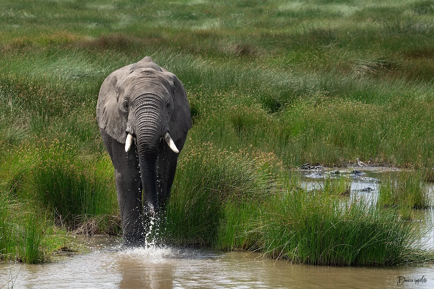 Our first day in Ndutu was good. We saw a young female lion up a tree and watched as she passed on several good meals, including a young zebra and a young impala— both in close proximity to her perch. We also tried to photograph backlit hippos spouting water as they reached the surface. It’s so hard to try to predict where they will come up!